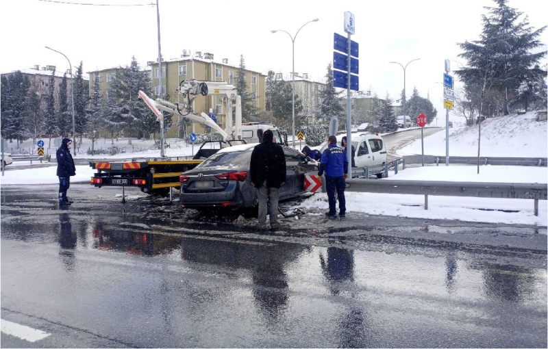 İzmit ilçesi Kurtuluş Bulvarında seyir halinde olan araç, kar yağışı nedeniyle sürücüsünün direksiyon hakimiyetini kaybetmesi sonucu bariyerlere çarptı. Aracı kullanan anne ve çocuğun yardımına Kocaeli Büyükşehir Belediyesi Zabıta ekipleri koştu. Büyükşehir zabıtası, kaza yapan araç sürücüsü anneye yardımcı olurken, küçük çocuğu da soğuk havada üşümemesi için kendi araçlarına aldı.