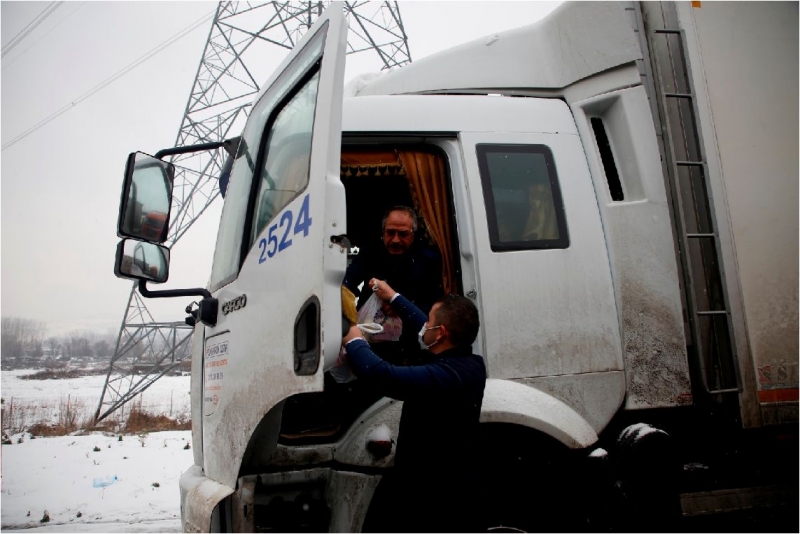 Bekledikleri turnikelerde alışveriş yapabilecekleri bir imkan bulunmayan turnikelerde bekleyen TIR şoförlerinin yardımına Kocaeli Büyükşehir Belediyesi koştu. Ekipler, Kocaeli Büyükşehir Belediye Başkanı Doç. Dr. Tahir Büyükakın’ın talimatıyla soğukta beklemek zorunda kalan şoförler için hazırladıkları, içlerinde sandviç, tatlı, meyve ve içeceğin bulunduğu kumanyaları dağıttı. Şoförler için Antikkapı A.Ş. tarafından 100 adet kumanya hazırlandı ve dağıtıldı.