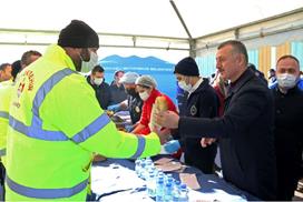 Başkan Büyükakın, Büyükşehir’in karla mücadelede yer alan personeliyle Uluslararası Fuar Merkezinin bahçesinde bir araya geldi. 7 gün 24 saat esasıyla karla mücadele çalışmalarında yer alan personele sucuk-ekmek, ayran ve çay ikram eden Başkan Büyükakın’a Genel Sekreter Balamir Gündoğdu, Genel Sekreter Yardımcıları, daire başkanları, şube müdürleri eşlik etti. Etkinlikte Fen İşleri, Park ve Bahçeler, Muhtarlık, Zabıta, İtfaiye daire başkanlıkları ve A Takımı personeli hazır bulundu.