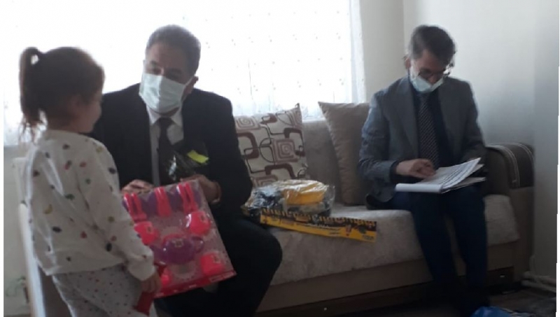 Ziyaret sırasında ailelere bir miktar para ve gıda çeki yardımında bulunup ailelerin küçük çocukları ile ilgilenen Kaymakam Mustafa Güler, çocukları çeşitli hediyelerle sevindirdi.