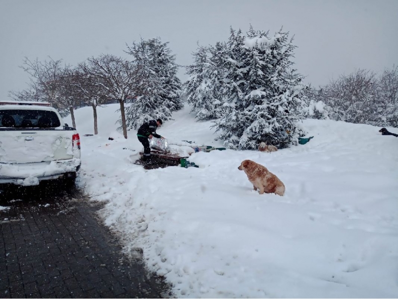Sokak hayvanlarının kış şartlarında aç kalmaması için gayret gösteren Büyükşehir, bu konuda büyük hassasiyet gösteren hayvan severler ve derneklerle gönül birliği yapıyor. Kar yağışı haberinin alınmasıyla birlikte Büyükşehir tarafından yerel hayvan gönüllüsü kartı olan hayvan severlere 4 ton kuru mama dağıtıldı. Ayrıca Büyükşehir ekipleri her gün kent genelindeki 55 ayrı noktada mama dağıtımına devam ediyor.