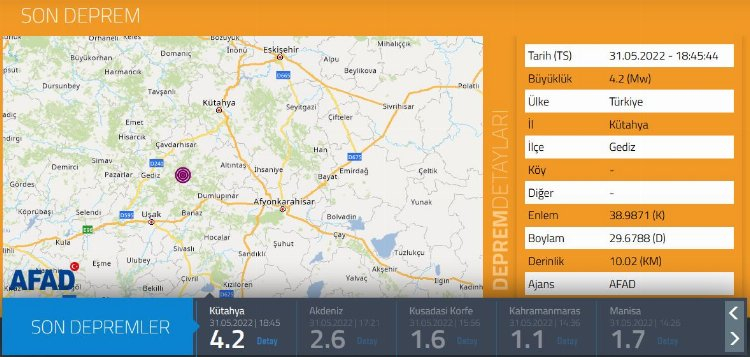 BURSA (İGFA) - AFAD'dan alınan bilgiye göre, saat 18.45'te merkez üssü Kütahya Gediz olarak açıklanan deprem kaydedildi.