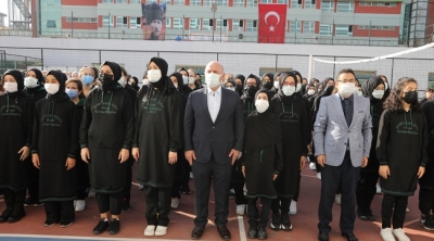 Her pazartesi okulun ilk günü bir okulu ziyaret eden Darıca Belediye Başkanı Muzaffer Bıyık, öğrencilerle birlikte İstiklal Marşı’nı okuyup iyi dersler diliyor.